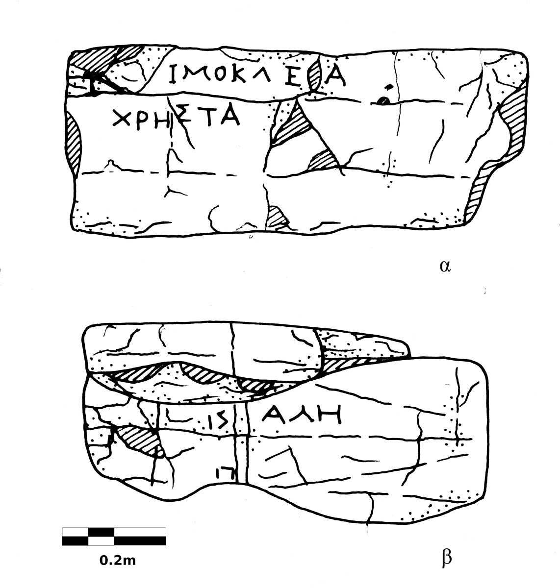 β) μέγιστο μήκος λίθου: 89 εκ., ύψος: 37 εκ. (σχ. 3α),