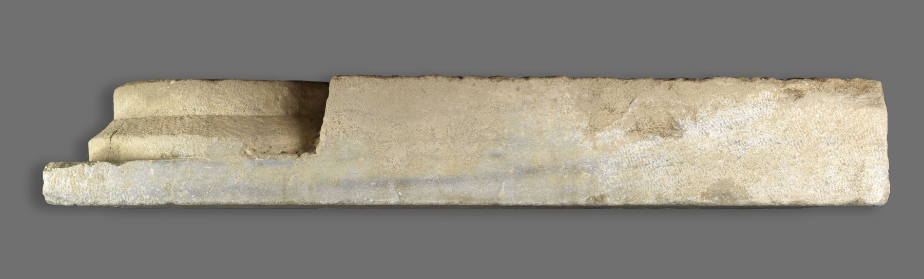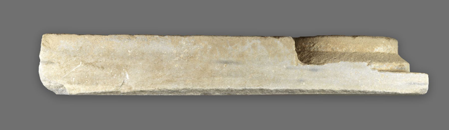 Μαρμάρινος, λειασμένος δόμος από άγνωστο κτίσμα που μέρος της πίσω όψης του μετασκευάστηκε – πιθανόν στον 6ο αι. μ.Χ. – σε αδρή, απλοποιημένη βάση κίονα με τετράγωνη πλίνθο. Με αυτή τη μορφή επαναχρησιμοποιήθηκε σε προστώο κτίσματος, πιθανόν στο παλαιοχριστιανικό λατρευτικό κτίριο του νεκροταφείου της Ευαγγελίστριας που καταστράφηκε γύρω στον 7ο αι.