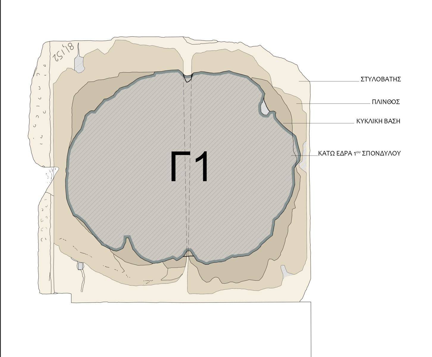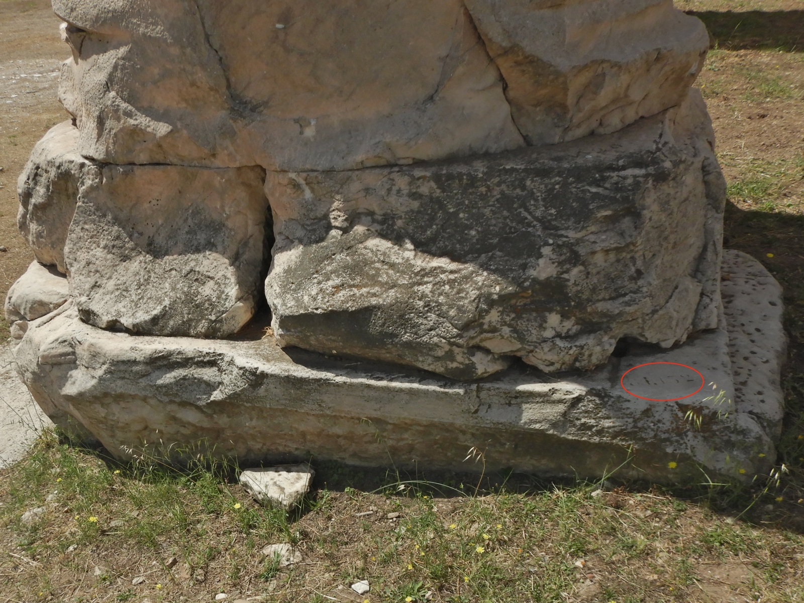 που εντοπίζεται στον στυλοβάτη του ΒΑ σωζόμενου κίονα, του Ναού.