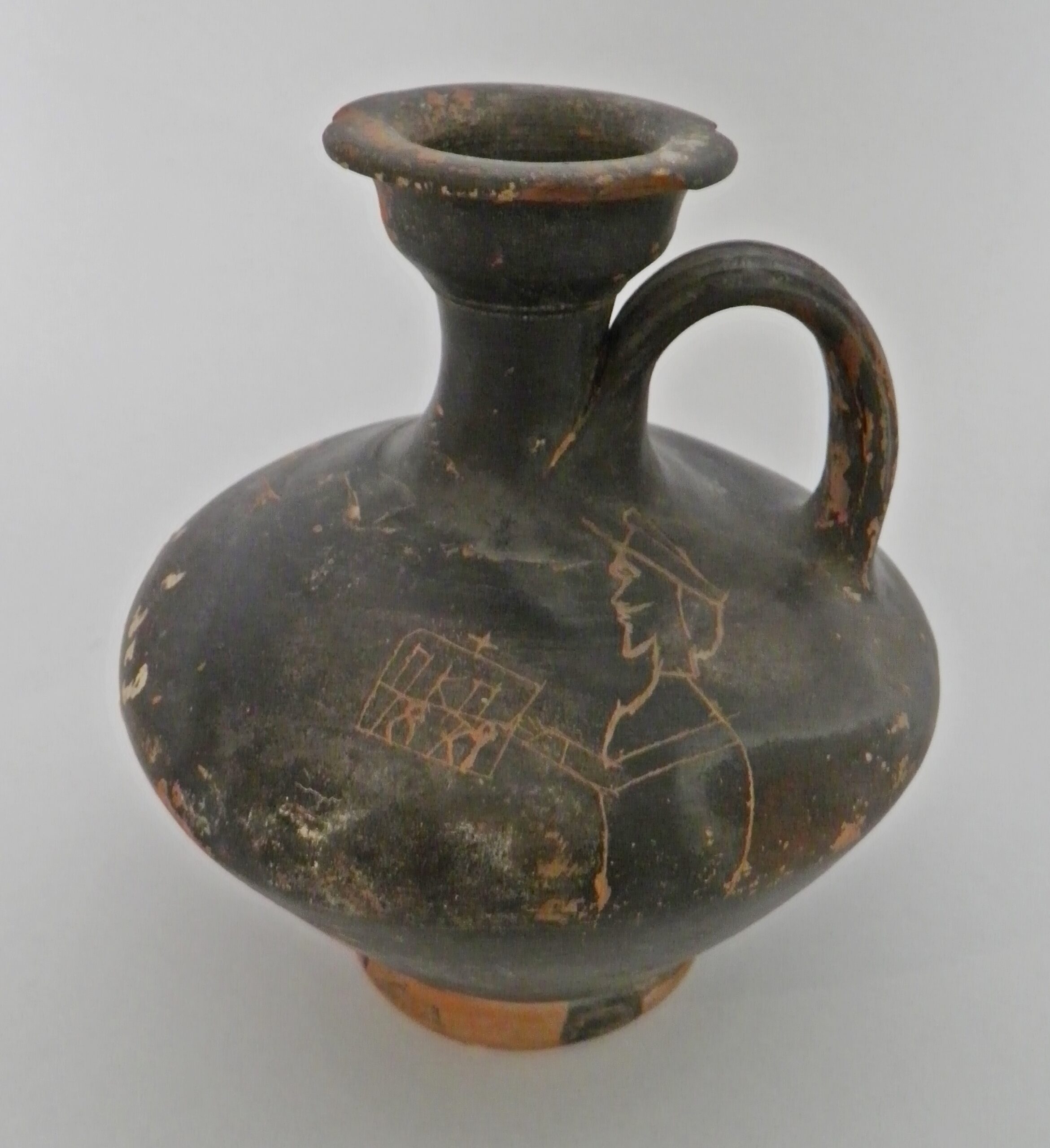 Μελαμβαφής οινοχόη με χαραγμένη μορφή ναυτικού